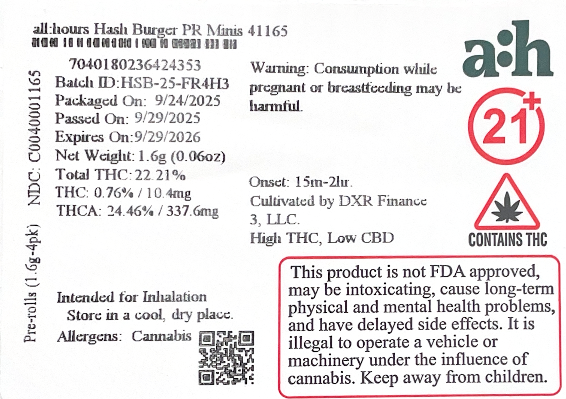 all:hours Hash Burger PR Minis 41165- 22.21% THC