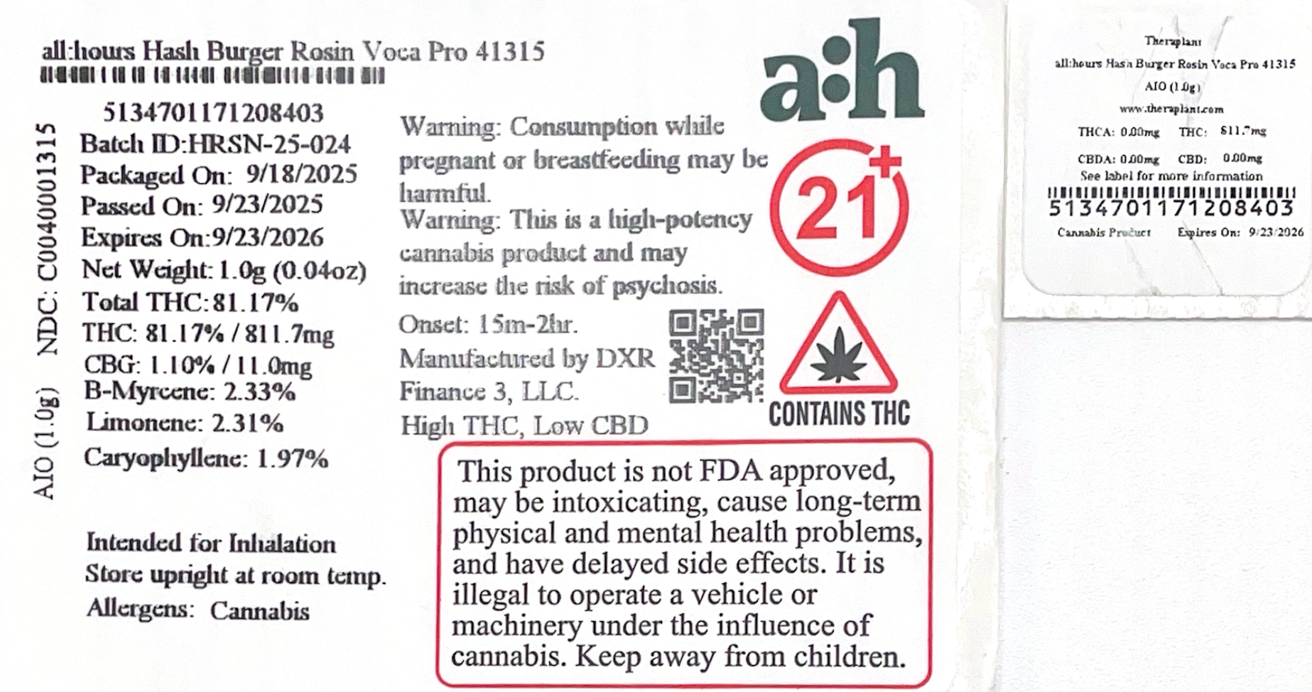 all:hours Hash Burger Rosin Voca Pro 41315- 81.17% THC