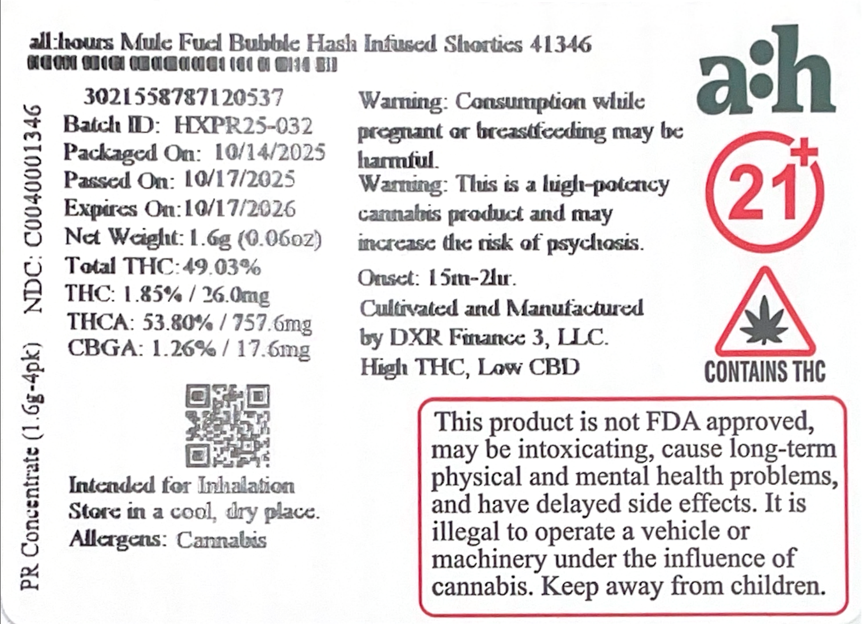 all:hours Mule Fuel Bubble Hash Infused Shorties 41346