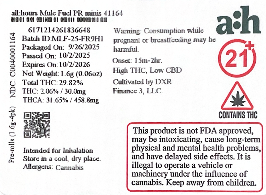 all:hours Mule Fuel PR minis 41164-29.82% THC