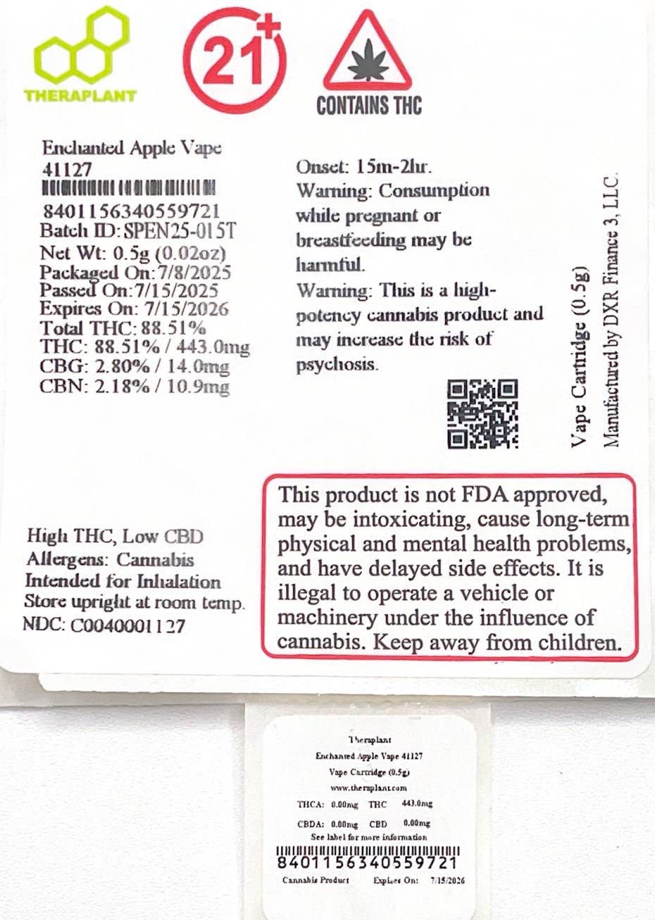 Enchanted Apple Vape 41127- 88.51% THC