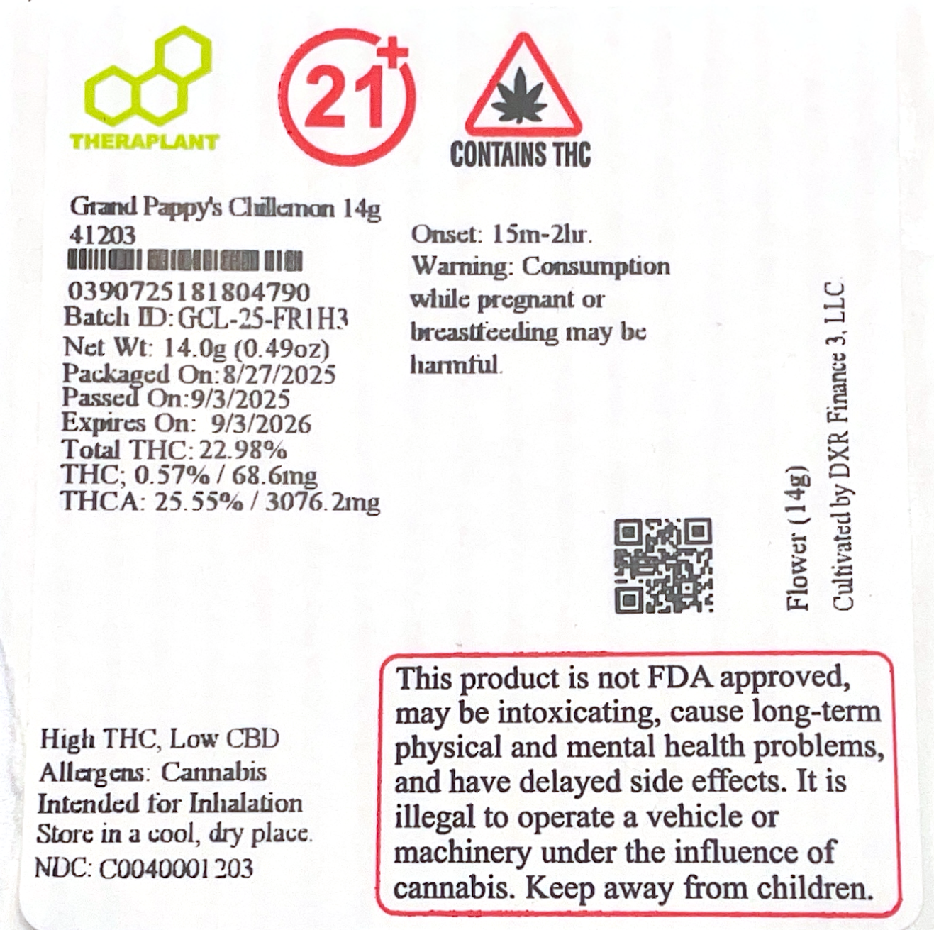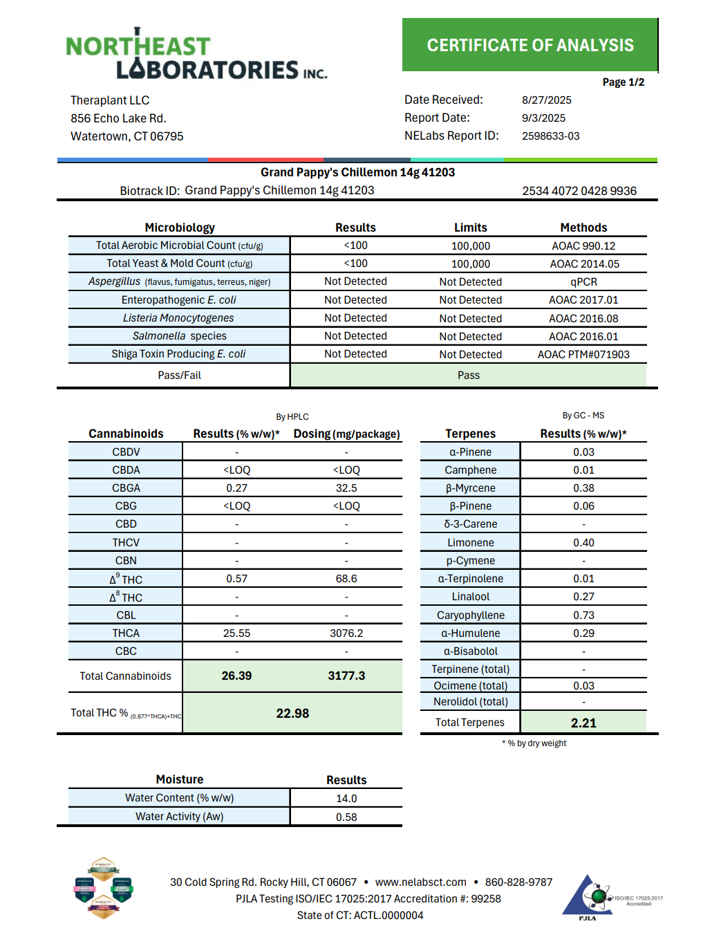 Grand Pappy’s Chillemon 14g 41203- 22.89% THC