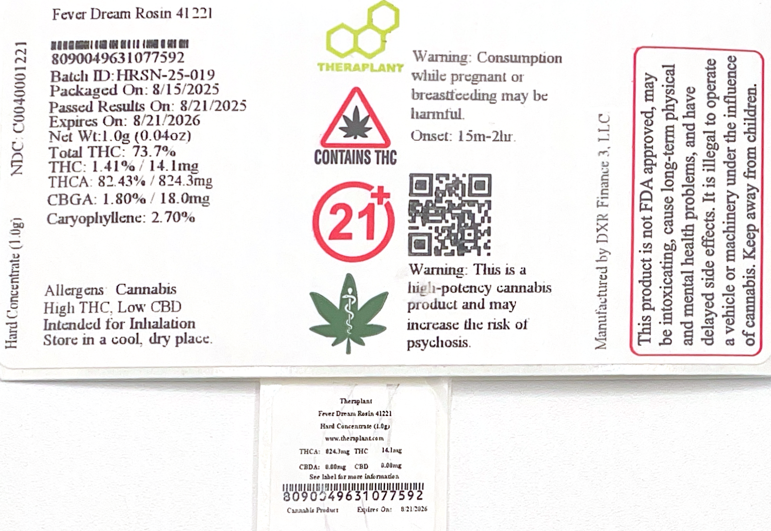 Medical-Fever Dream Rosin 41221- 73.70% THC