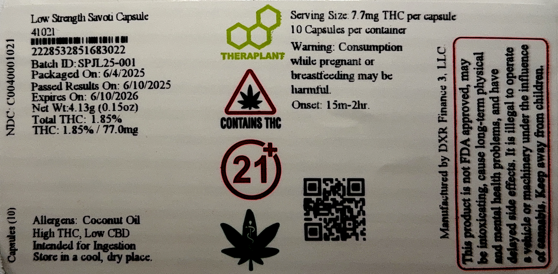 7.7mg THC per capsule/ 77mg THC per Bottle