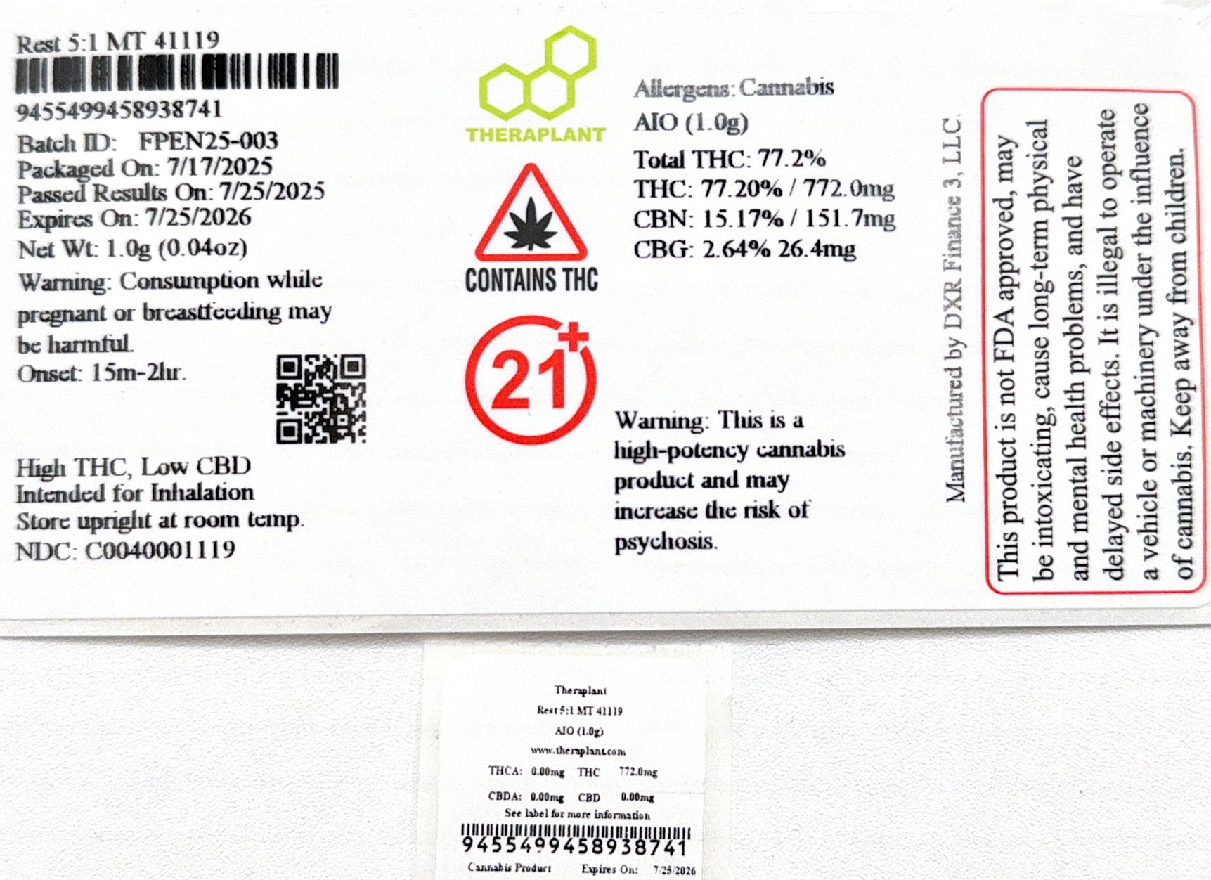 Rest 5:1 MT 41119- 77.2% THC: 15.17% CBN