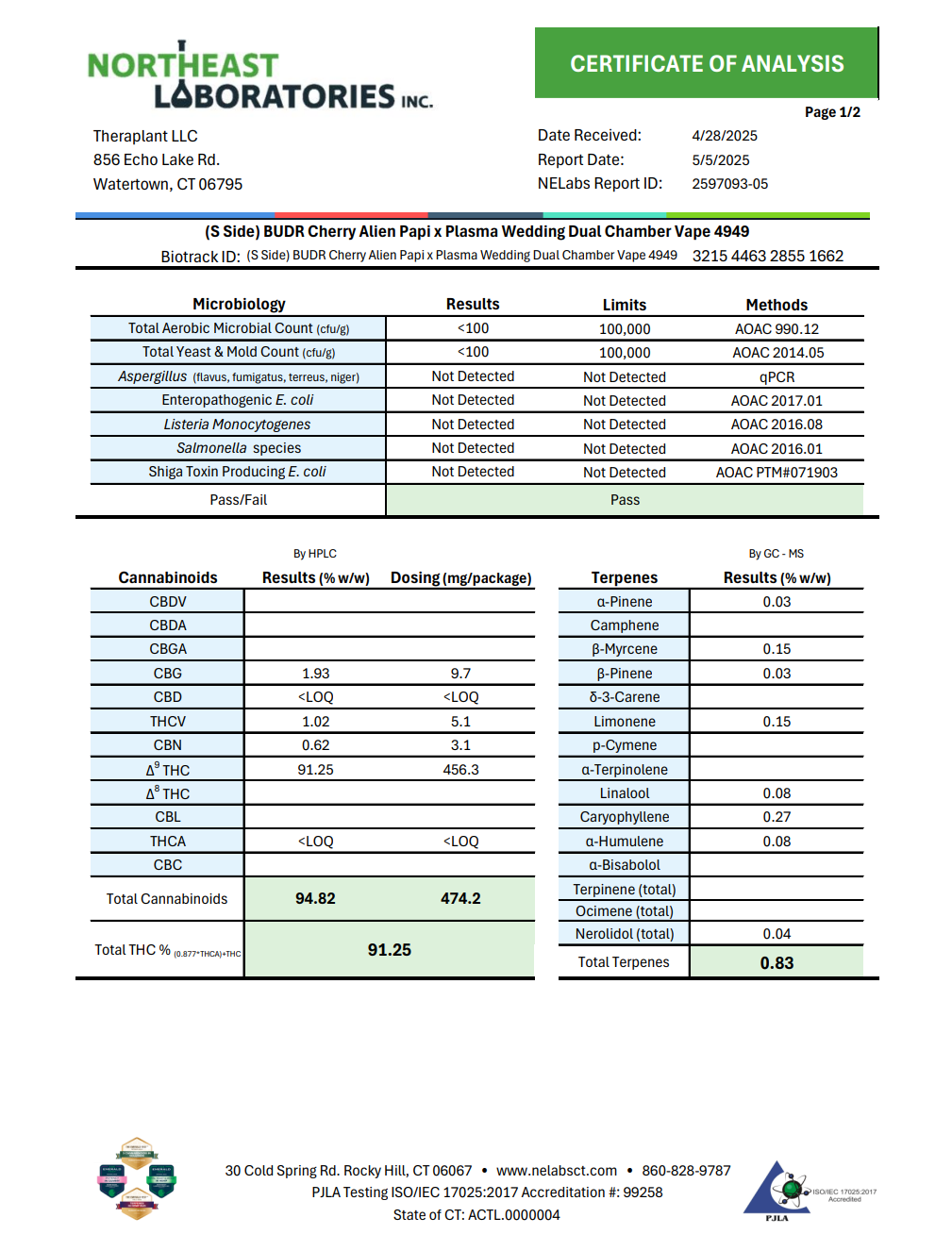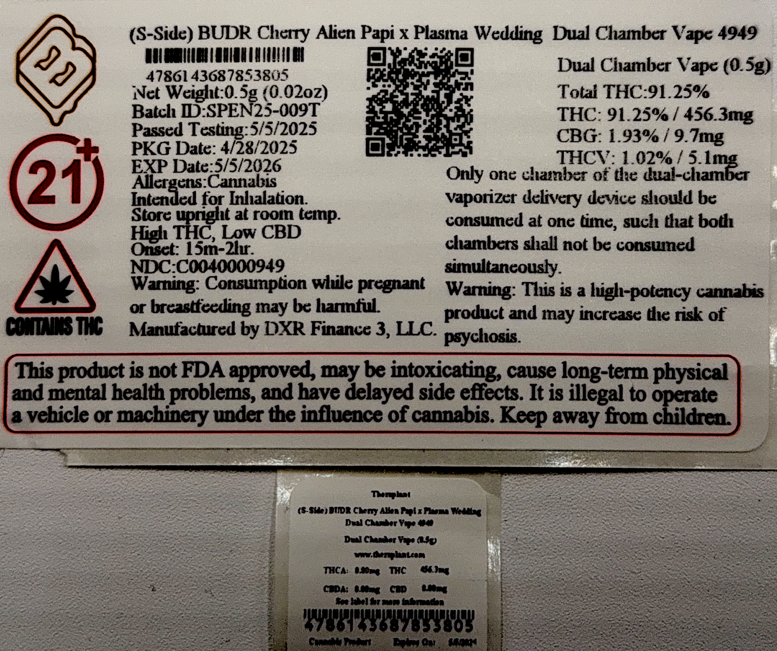 (S-Side) BUDR Cherry Alien Papi x Plasma Wedding Dual Chamber Vape 4949- 91.25% THC